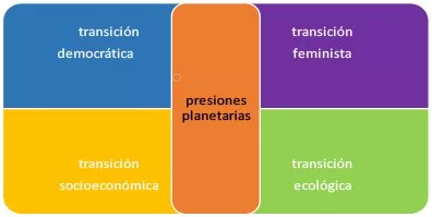 Cada transición está estructurada en dimensiones que señalan en qué ámbitos se necesita avanzar en el proceso de transformación. Cada dimensión tiene uno o varios indicadores, un total de 50 entre las 4 transiciones.