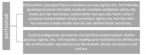 - Bestetik, bizi-estiloaren eta parte hartzeko pauta sozialen aldaketak ulertzea, eta herritarrekin konektatzeko bide berriak bilatzea, erakundeen jarduera gerturatuz eta erakundean parte hartzeko bide anitzak eskainiz.