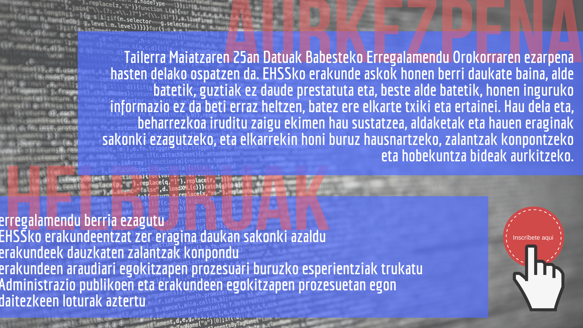 2018ko maiatzaren 25ean Datuak Babesteko Erregelamendu Orokorra jarriko da abian eta horren harira antolatutako tailerra da. Hirugarren Sektore Sozialeko erakunde askok badute horren berri, baina denak ez daude prest eta bestalde, informazioa ez da beti erraz iristen, batez ere elkarte txiki eta ertainetara.