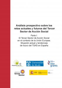 La investigación “El Tercer Sector de Acción Social en el contexto de la Unión Europea. Situación actual y tendencias de futuro del TSAS en España”, constituye la I parte del estudio general que aborda el “Análisis prospectivo sobre los retos actuales y futuros del Tercer Sector de Acción Social”, seguida de “Los retos del Tercer Sector de Acción Social en España”, que se encuentra en